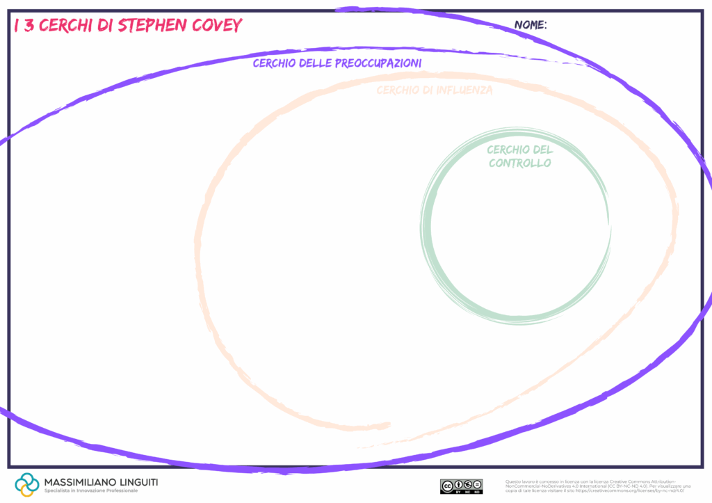 Ho estrapolato il concetto di Cerchio di Influenza dal famoso best seller di Stephen Covey “Le 7 abitudini delle persone altamente efficaci”, rileggendo la prima abitudine, ovvero “essere proattivi”.